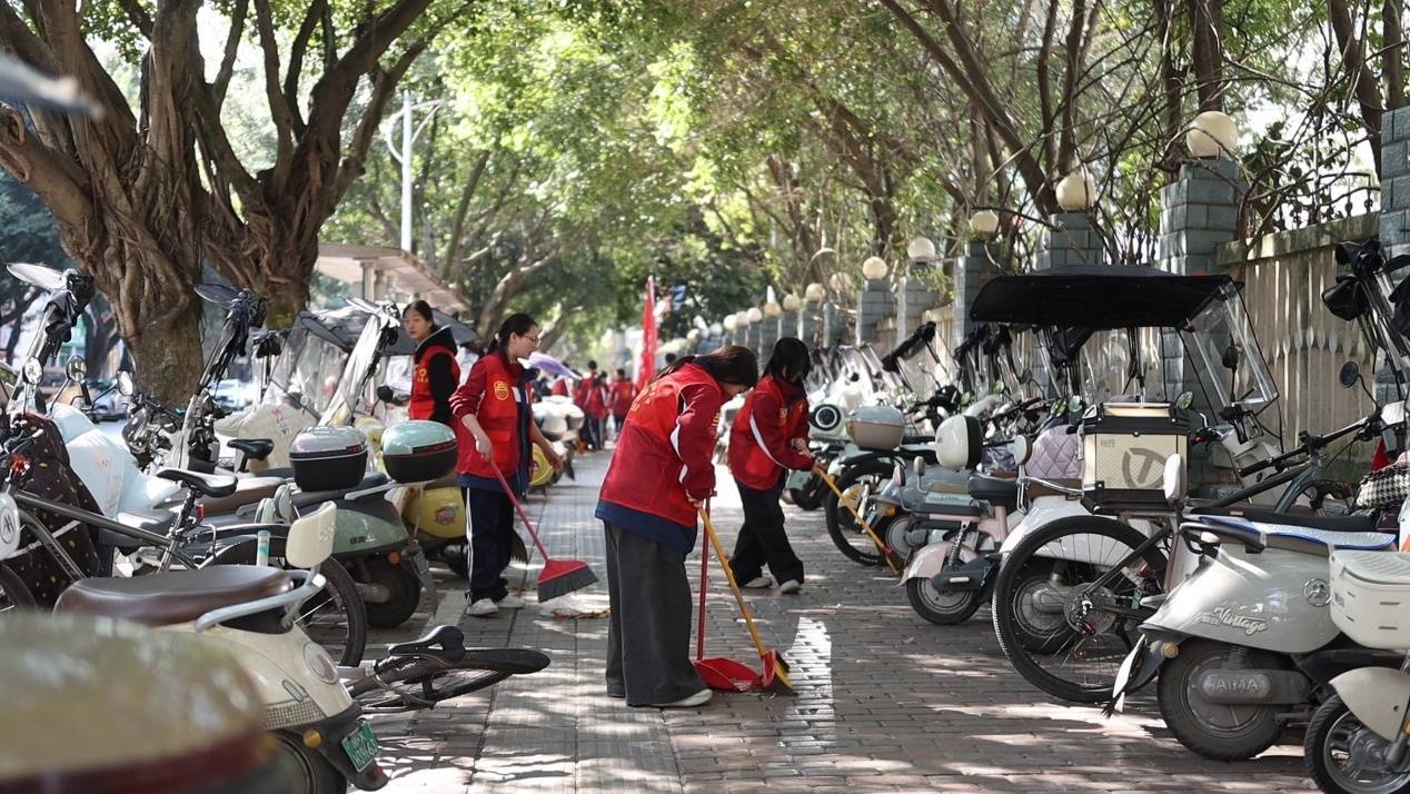 走出校门,我们同样是雷锋精神的践行者。百余名学生志愿者拿起扫帚、抹布,走进街道、广场与绿化带,用稚嫩却坚定的双手,清扫垃圾、归整车辆、擦亮公共设施。这是一场青春的“战斗”,更是一次心灵的洗礼。同学们将以实际行动证明:“把有限的生命投入到无限的为人民服务中去”并非遥不可及的誓言,而是始于足下的每一次俯身、每一次擦拭。用心去做每一件小事,就是对雷锋精神最真诚、最质朴的理解与传承。